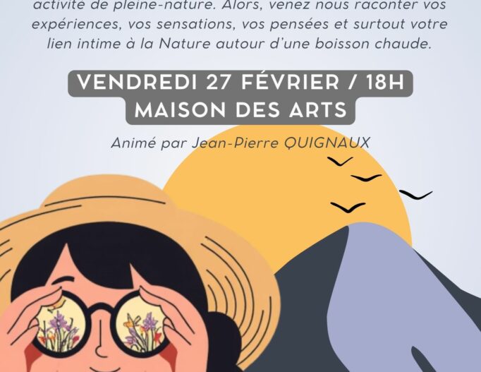 Alors, venez nous raconter vos expériences, vos sensations, vos pensées et surtout votre lien intime à la Nature autour d’une boisson chaude à l’occasion de ce premier café philo 2026 à la Maison des Arts.