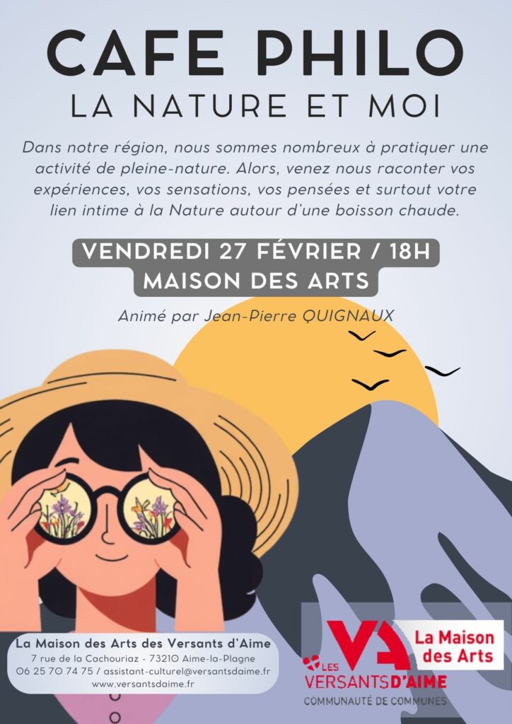 En marge de l’exposition d’aquarelles « Entre Neige et Lumière » et du printemps 2026 marqué par le Festiv’à lire, la Maison des Arts des Versants d’Aime vous propose un Café philo :