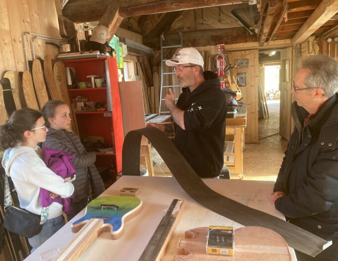 À l’initiative de leur professeur, Jacques ANFOSSI, les élèves de l’école de musique, théâtre et danse des Versants d’Aime ont eu le privilège de visiter l’atelier bois de Manu CHALOPIN, fondateur de Gueule de Bois à Longefoy.