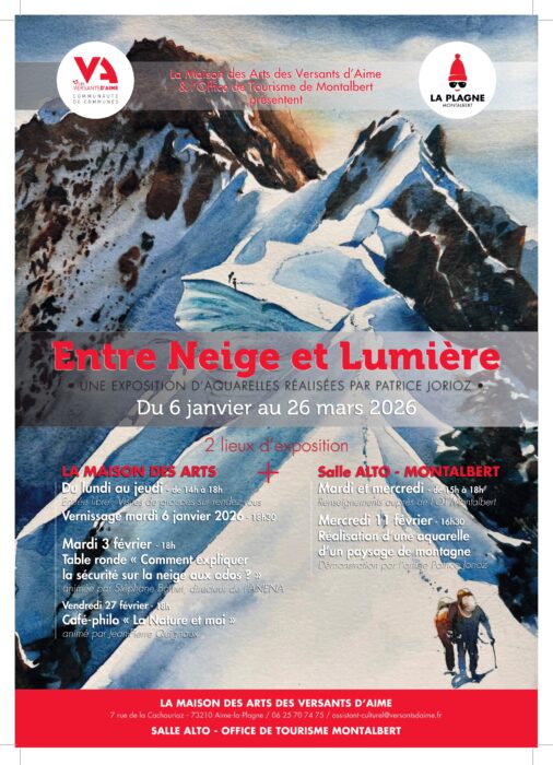 La Maison des Arts des Versants d’Aime lance l’année 2026 en beauté avec l’exposition « Entre Neige et Lumière », dédiée aux aquarelles de paysages montagnards de Patrice Jorioz.